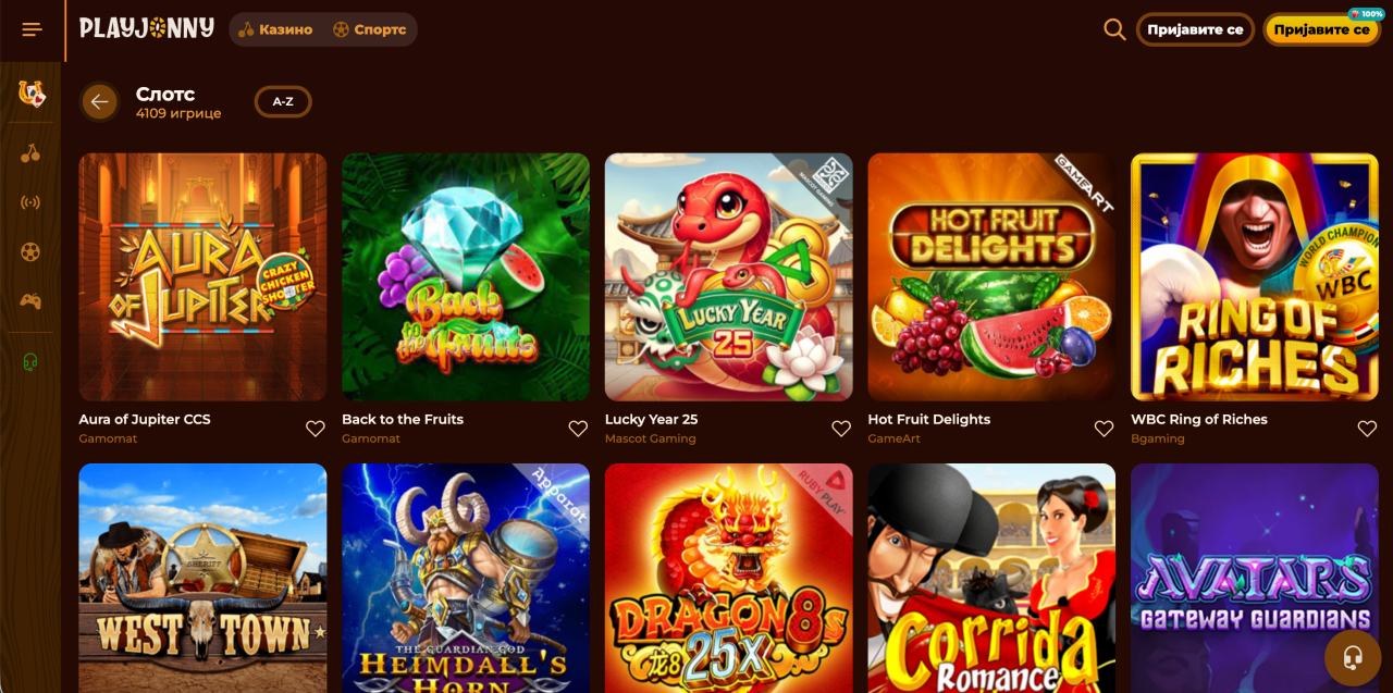 Ukoliko više volite svet svetlećih automata i kazino stolova, PlayJonny kazino je mesto gde akcija nikada ne prestaje. Od klasičnih slotova do modernih video igara, izbor je zaista ogroman. Partnerstvo sa vodećim svetskim provajderima softvera garantuje visok kvalitet, fer igru i zadivljujuću grafiku. PlayJonny kazino ne nudi samo slotove, već i klasične stolne igre kao što su rulet, blekdžek i bakarat, kako u digitalnom, tako i u formatu kazina uživo. Kontinuirano se dodaju nove igre, tako da uvek postoji nešto novo za istraživanje u PlayJonny kazino ponudi. Uživajte u uzbuđenju!