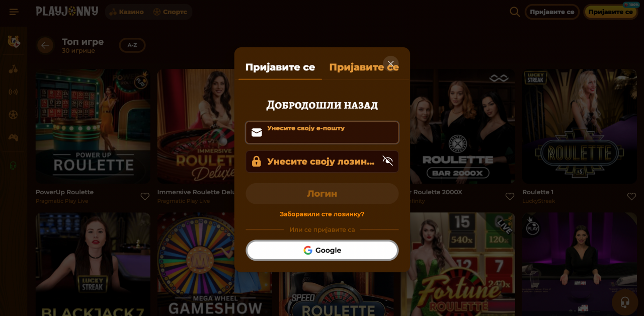 - Prijava na Nalog: Prijavite se na svoj korisnički nalog na kladionica PlayJonny.